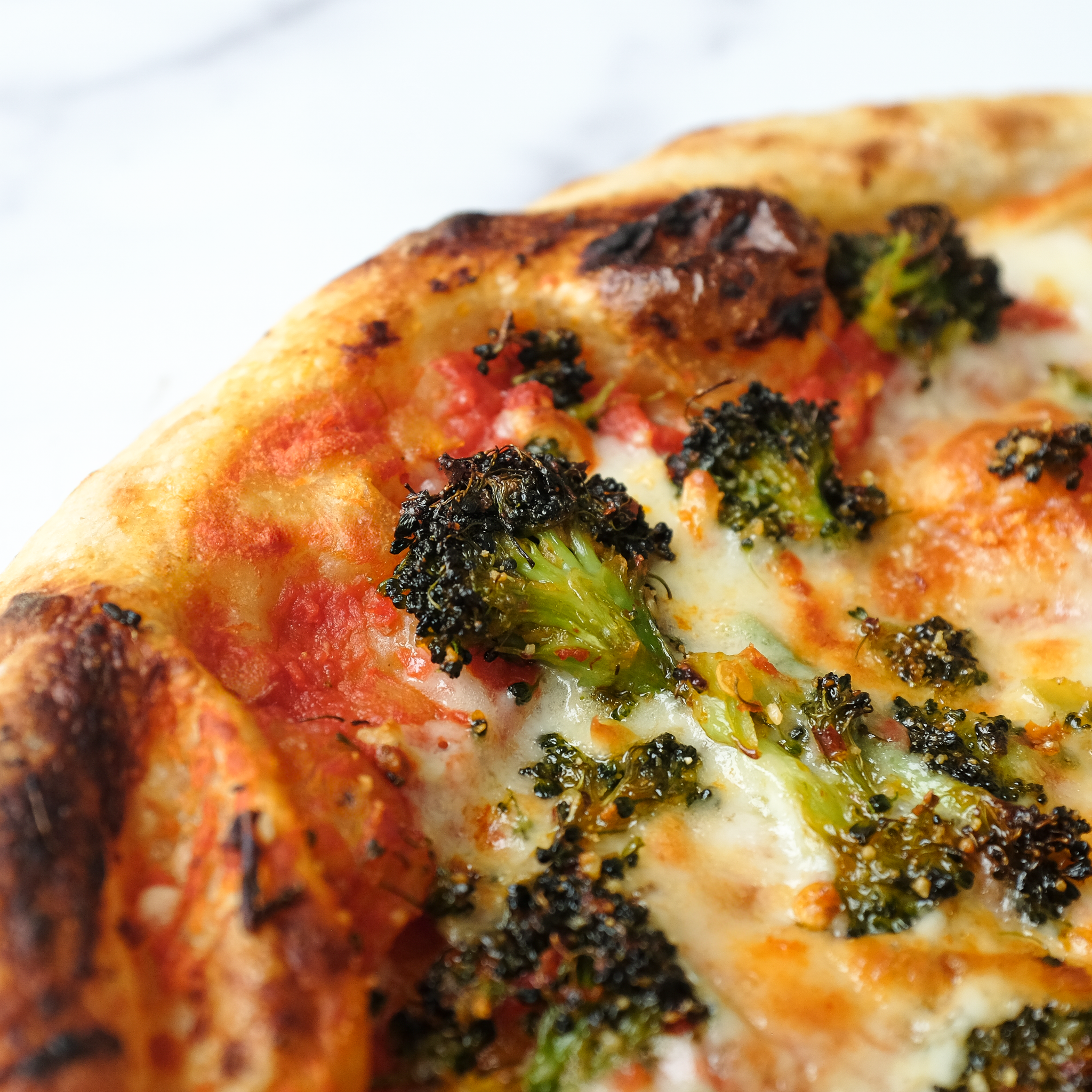 Few things hit like a toasty broccoli floret. We toss these guys in garlic and Calabrian chilies, then do our trademark "pre-roast" so it's perfect when you take it out of the oven. Be who you are--a person who eats delicious vegetables on pizza--with no apologies. Let's go.
